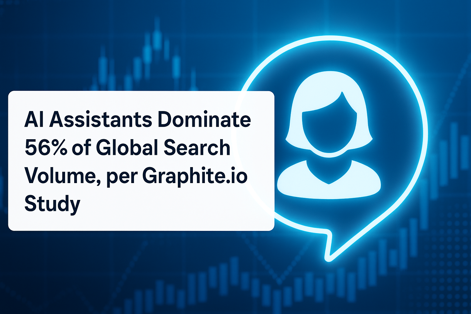 March 16, 2026 — A Graphite.io study reveals that AI assistants dominate 56% of global search volume, per Graphite.io study, with AI tools generating approximately 45 billion monthly sessions worldwide.