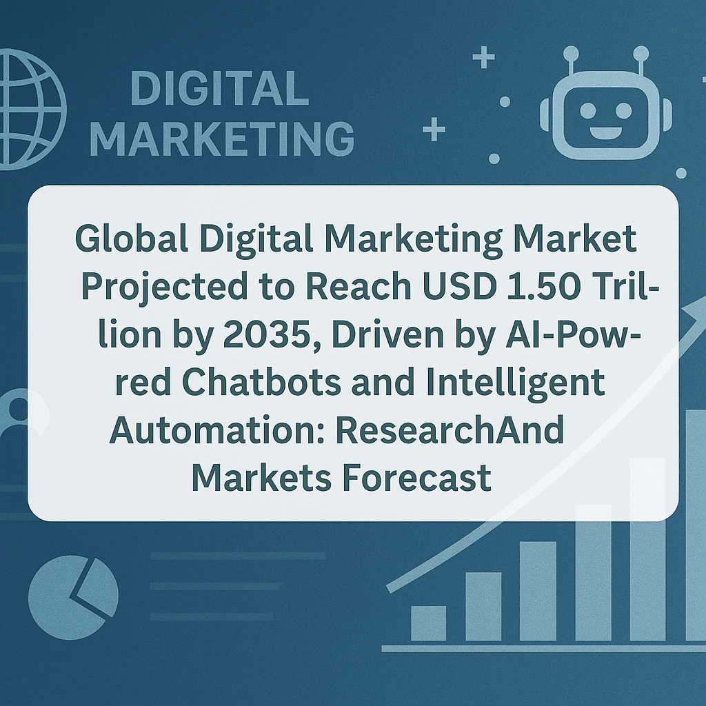 March 16, 2026 — Dublin Market research firm ResearchAndMarkets forecasts the Global Digital Marketing Market Projected to Reach USD 1.50 Trillion by 2035, Driven by AI-Powered Chatbots and Intelligent Automation, expanding from USD 446.5 billion currently at a compound annual growth rate (CAGR) of 11.66%, according to a press release published March 3.